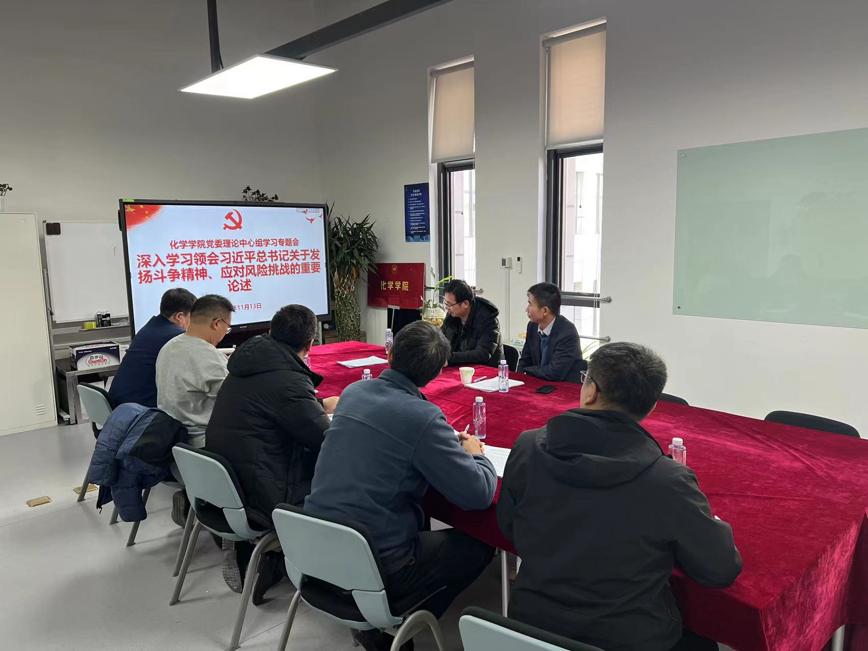 11月13日上午,化学学院党委理论学习中心组召开学习会,围绕“深入学习领会习近平总书记关于发扬斗争精神、应对风险挑战的重要论述”展开学习。党委书记刘克松主持会议,学院党委理论学习中心组成员参加会议。