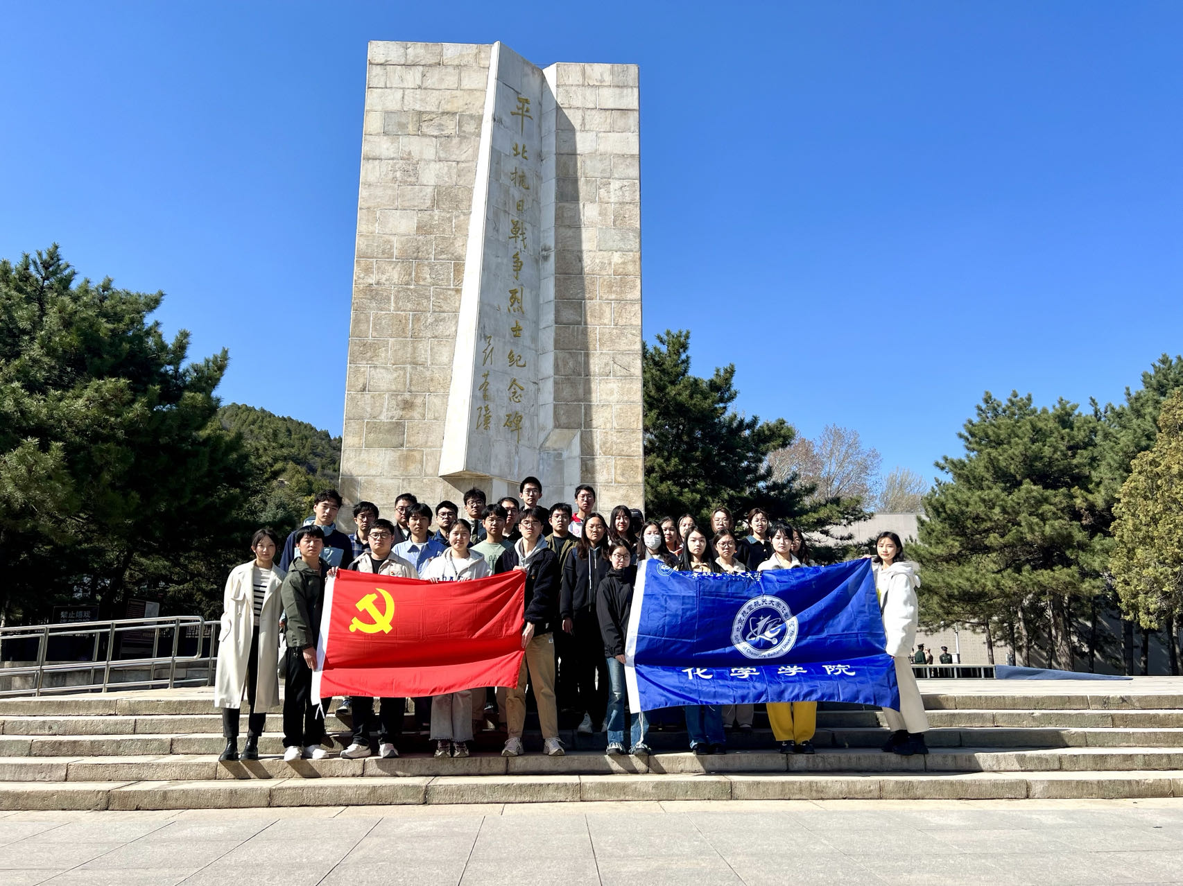 为扎实开展深入贯彻中央八项规定精神学习教育工作,全面加强党性修养,传承革命精神,清明节前夕,化学学院党委、工会组织师生赴平北抗日战争纪念馆进行清明祭英烈参观学习活动。