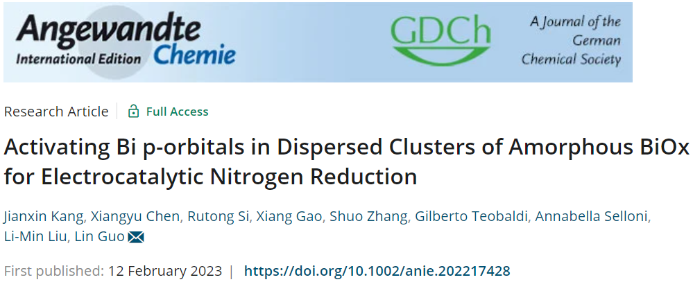 近日,化学学院郭林教授和物理学院刘利民教授研究团队在高度分散的原子级非晶BiOx团簇可控制备及其电催化氮气还原反应方面取得新进展。相关工作以“Activating Bi p-orbitals in Dispersed Clusters of Amorphous BiOx for Electrocatalytic Nitrogen Reduction”为题,2023年2月12日在线发表在《Angewandte Chemie International Edition》杂志上。该研究获国家自然科学基金项目(No. 51532001, 11974037)等资助。化学学院副教授康建新为文章的第一作者,化学学院博士生陈翔宇和北京计算科学研究中心博士生司如同为共同一作,北京欧美大片ppt免费大全为该论文的第一完成单位。